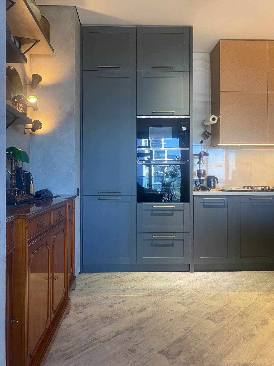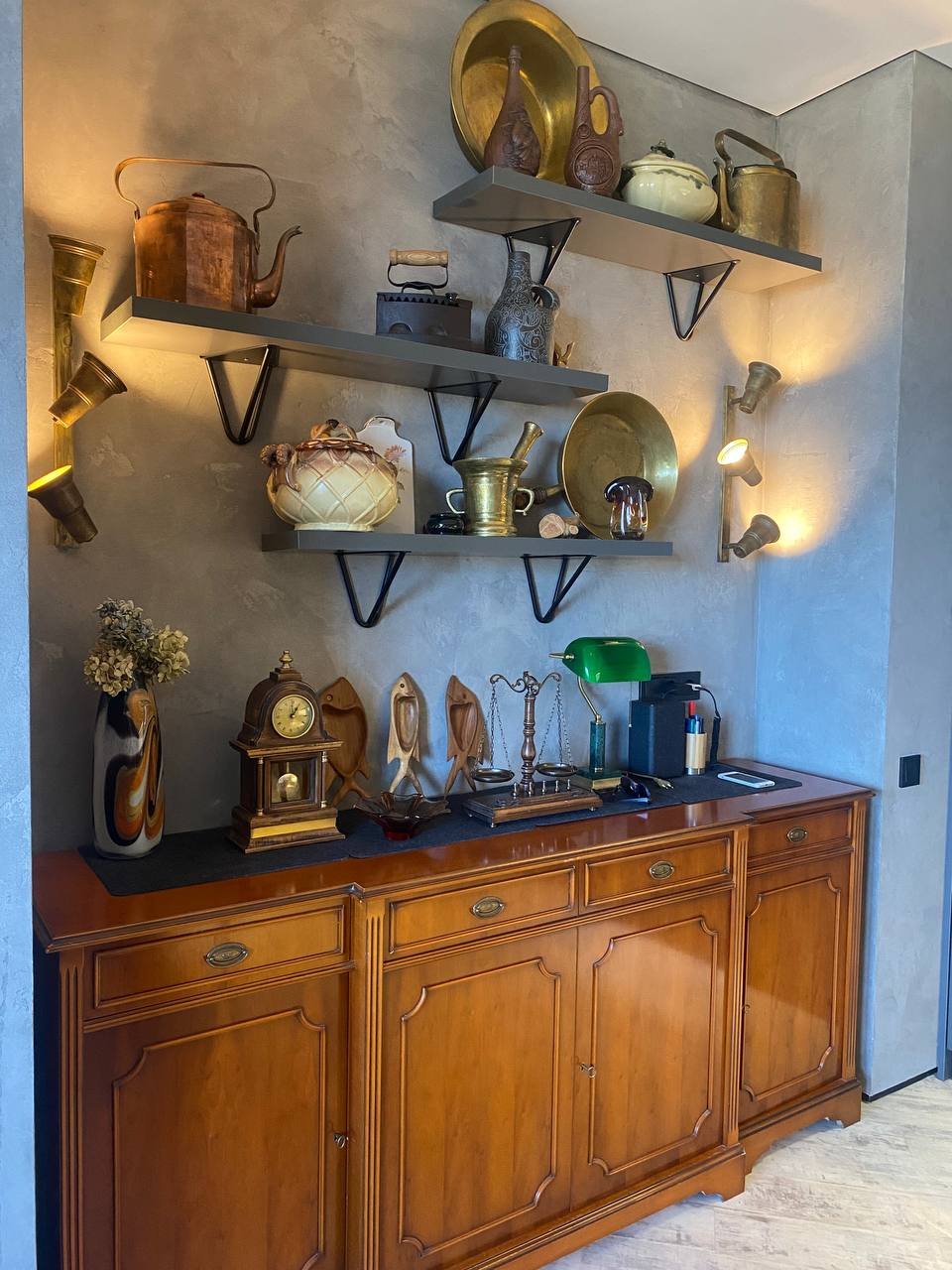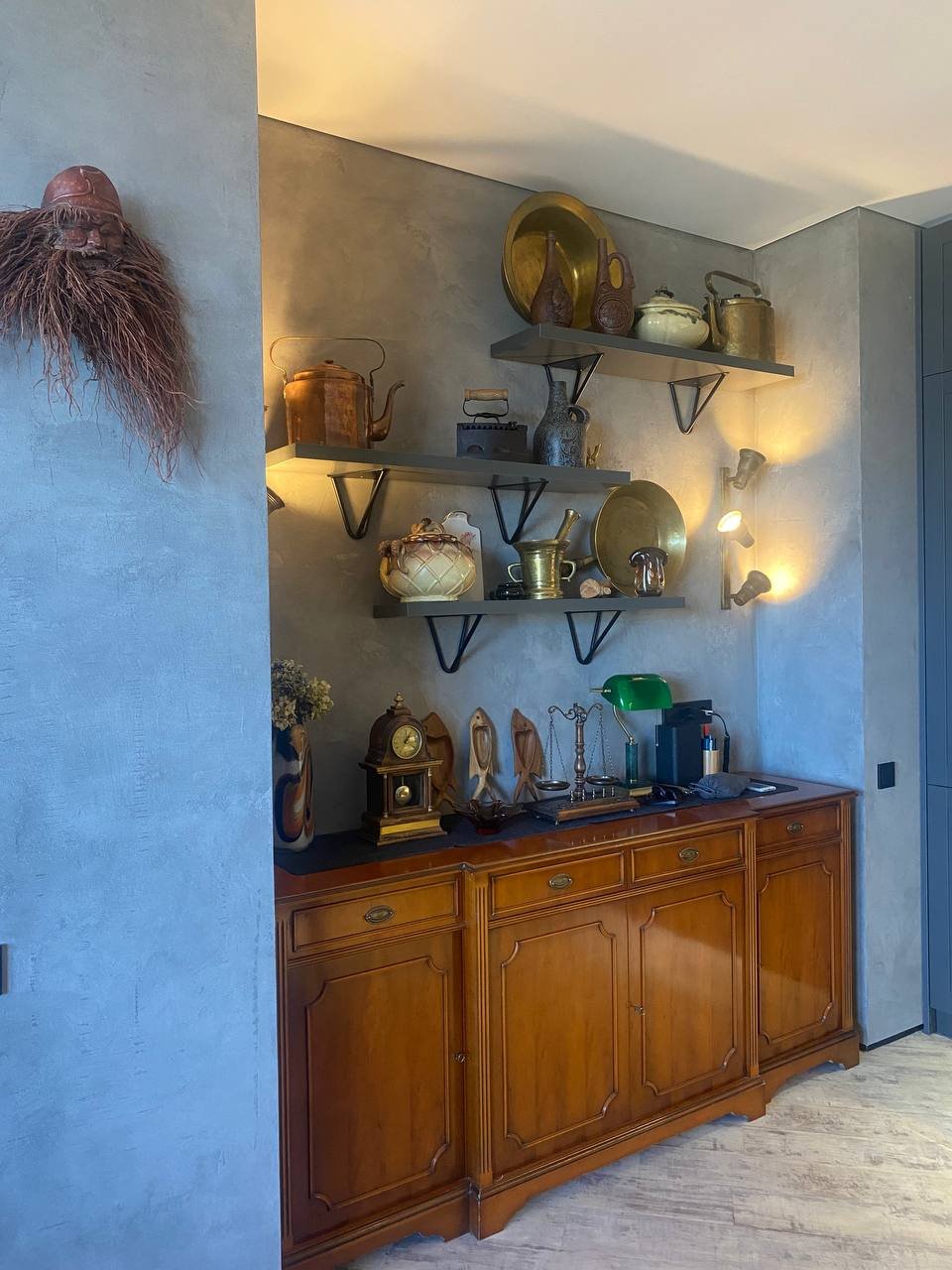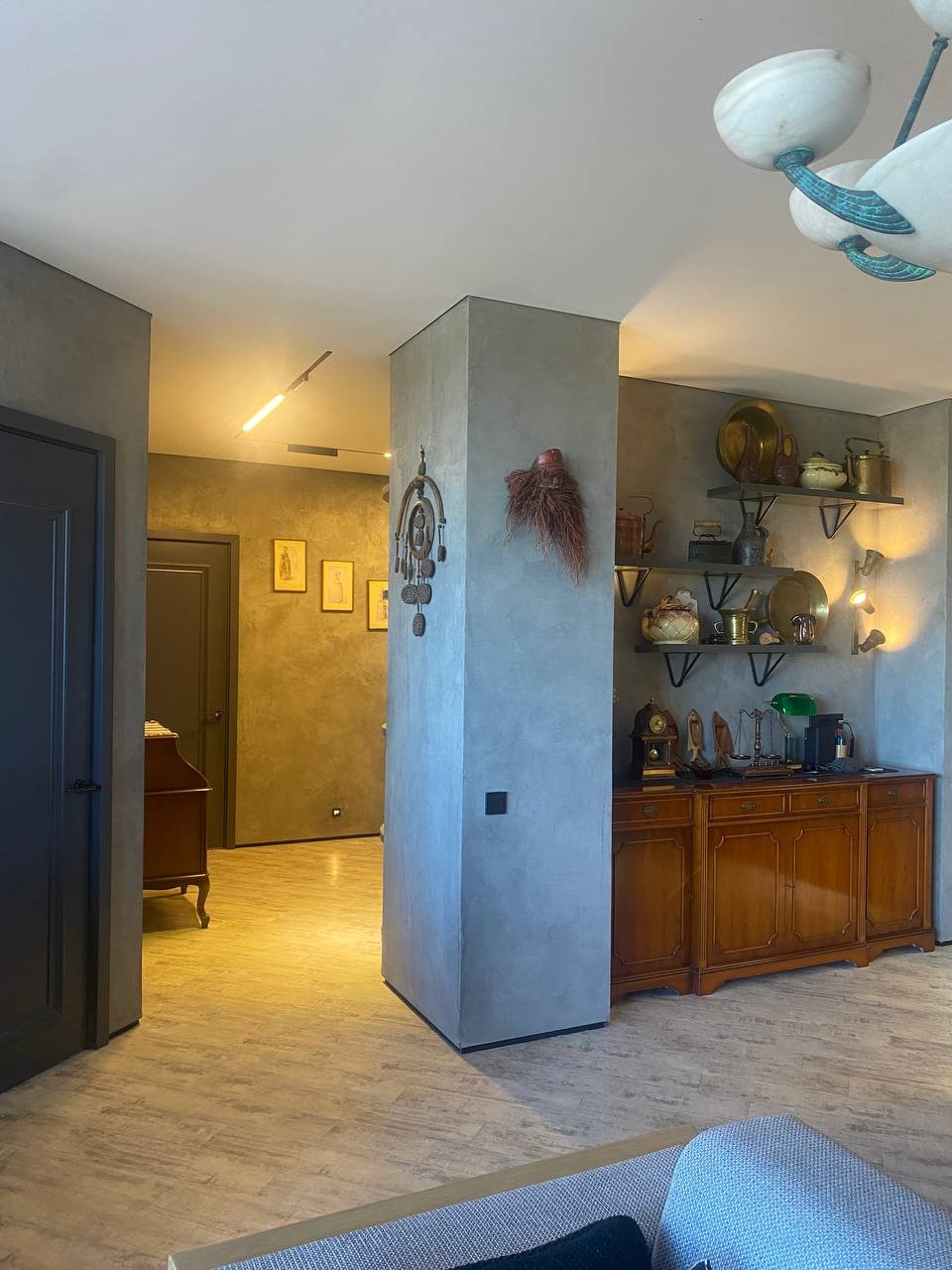 Очень интересный проект пропитан душой хозяина все декоративные вещи на полках и стенах, в сервантах собирались долгие годы! Часть мебели на момент составления дизайн проекта уже была, а также часть освещения (люстры, бра, торшеры) остальное спроектировала наша компания .