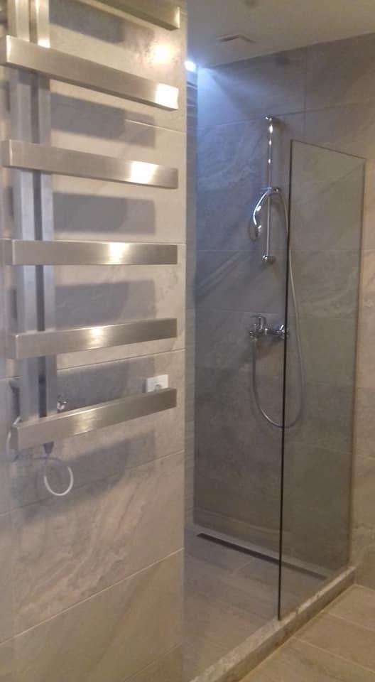 Дом где находиться квартира не газифицирован, поэтому для обогрева в холодный периоды года мы использовали электрический теплый пол разместив его вдоль витражей, в гардеробной, коридоре и в санузле.